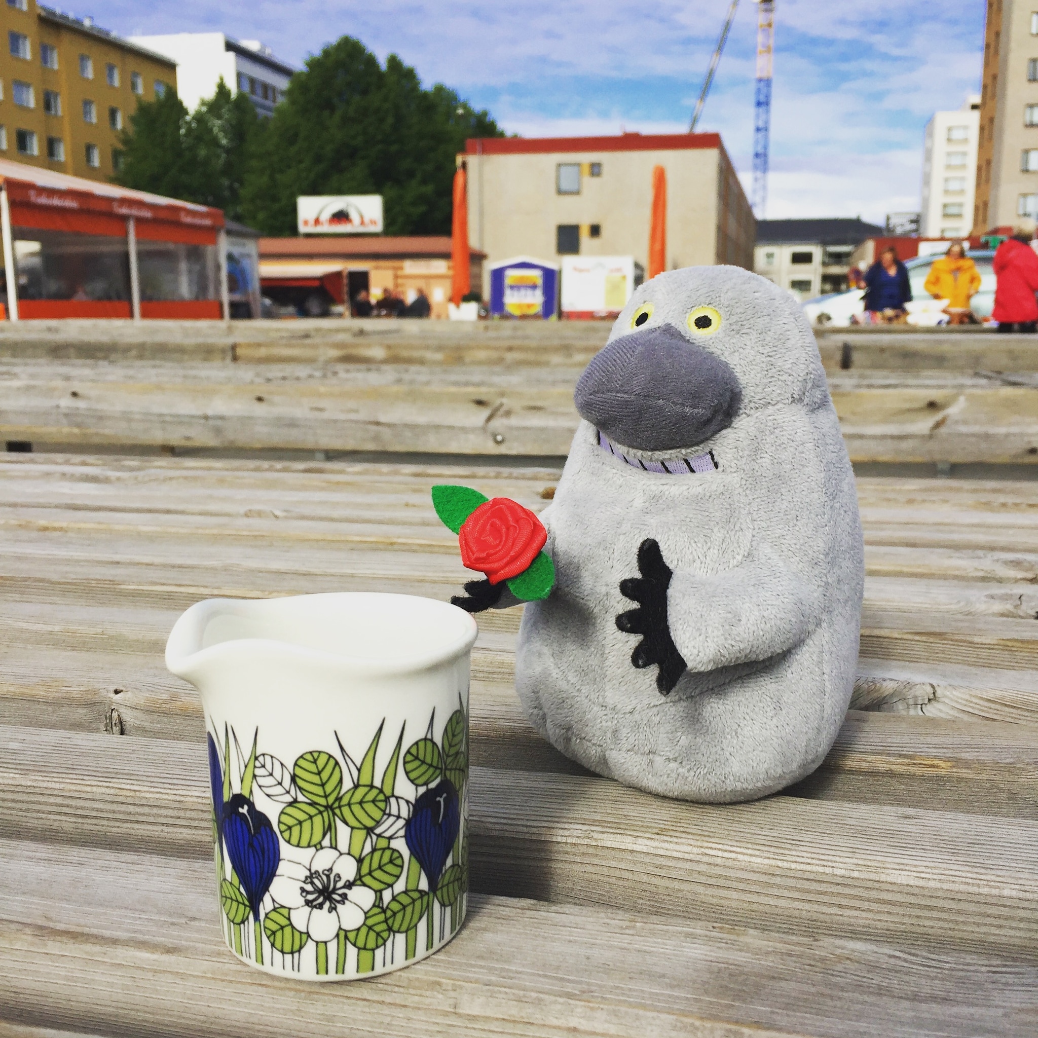 まだ準備中のお店が多いようだけど、見ているとピッチャーばかり並べているおじさんのお店に、なんとクロッカスのクリーマーが!!