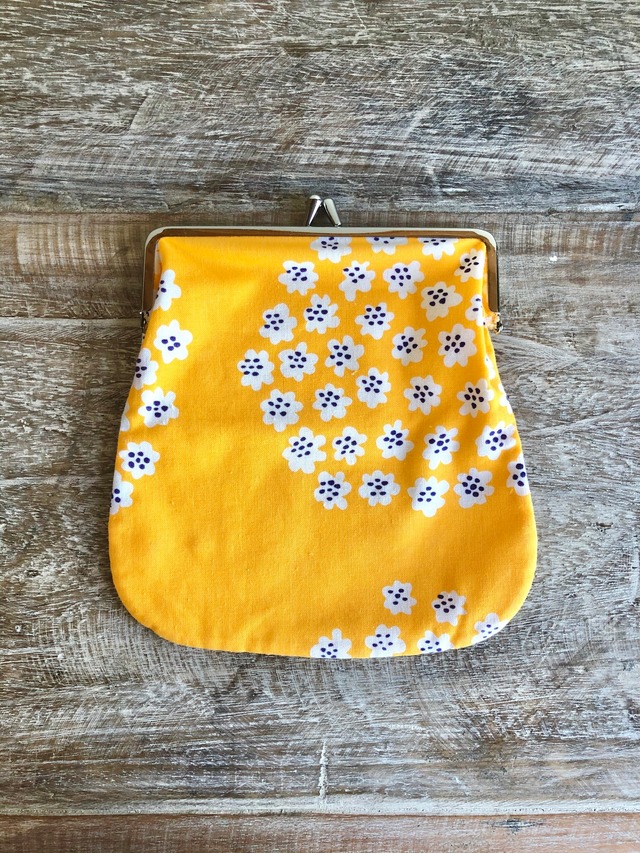 [フィンランド買付品] [ユーズド] マリメッコ、「プケッティ」イエローの大きめがま口ポーチです。 きいろとオレンジの間、やまぶき色のようなカラーで、白いお花が散りばめられています。 元気の出る明るいカラーと、かわいらしいデザインが魅力的。 マリメッコの人気柄です。 メーカー名 : MARIMEKKO (マリメッコ) シリーズ名 : Puketti (プケッティ) デザイン : Annika Rimala (アンニカ・リマラ) カラー : イエロー サイズ : 14.0(がま口はば)×17.5cm(深さ) 素材 : コットン100% *コンディション 多少毛羽立ちのようなものはありますが、目立って大きな汚れやダメージはありません。 *こちらの商品は、単一でのご注文の場合クリックポストにて発送させていただきます。 食器やギフトと同梱の場合は、ゆうパックをご選択ください。