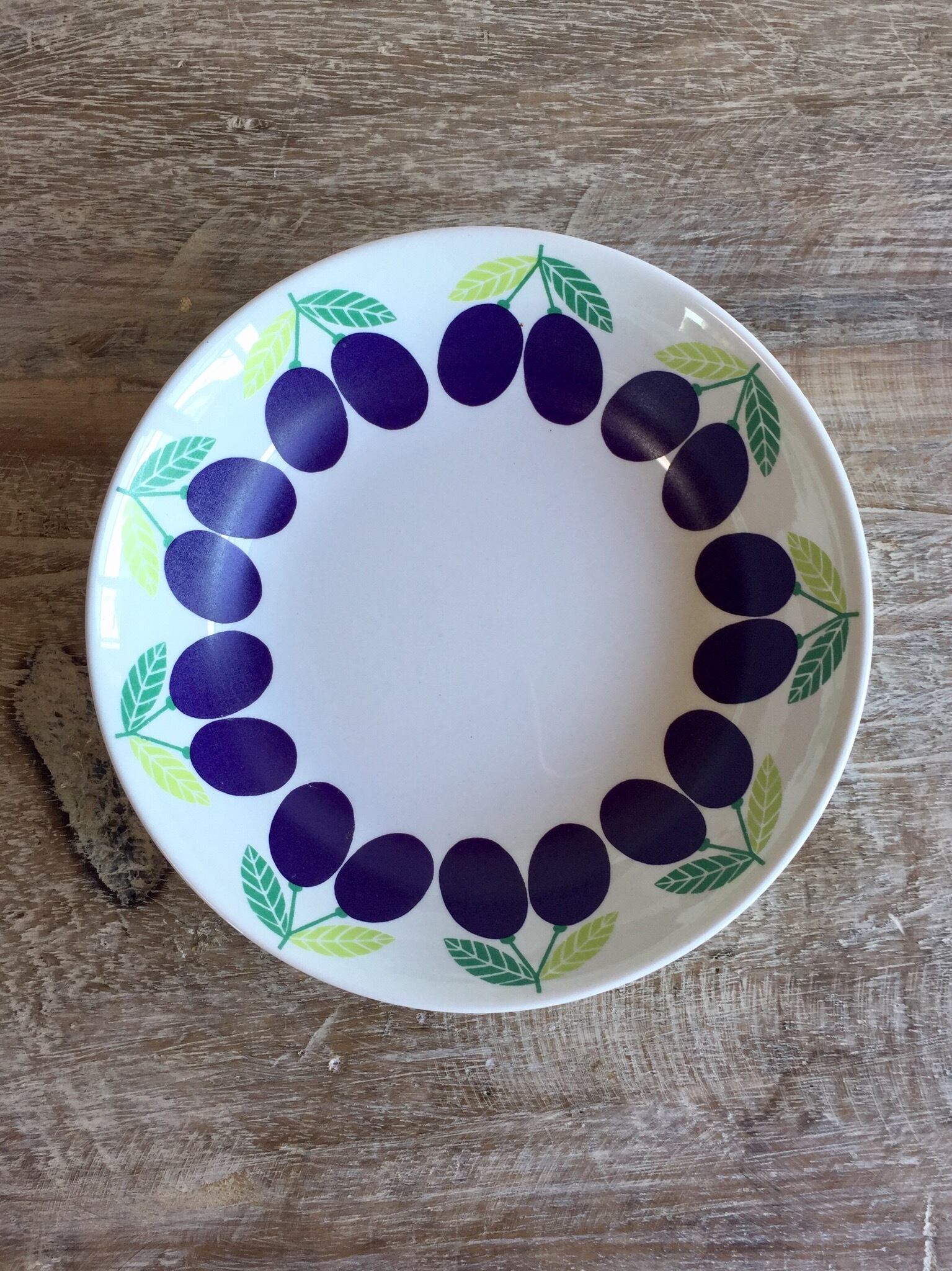 こちらは紫色のプラムの実が、ぐるりとプレートの縁を囲っています。