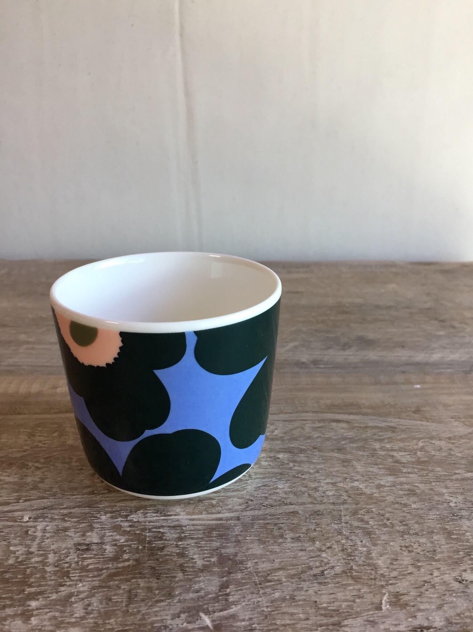 マリメッコ、「ウニッコ」ライトブルーとダークグリーンのラテマグです。