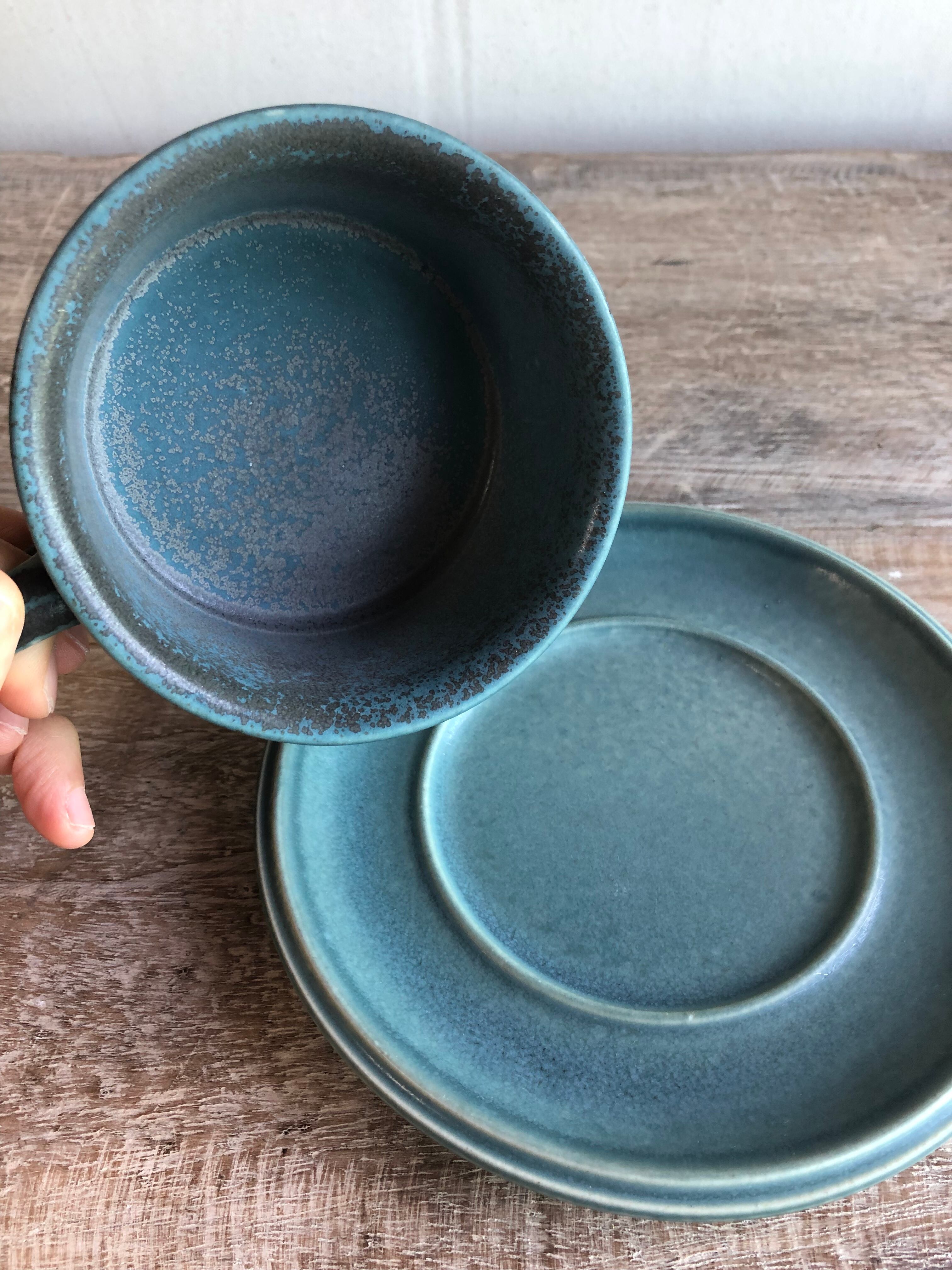 ソーサーに比べ、カップの方が濃いめの色で、②のカップに比べ、内側に模様が入っているようです。