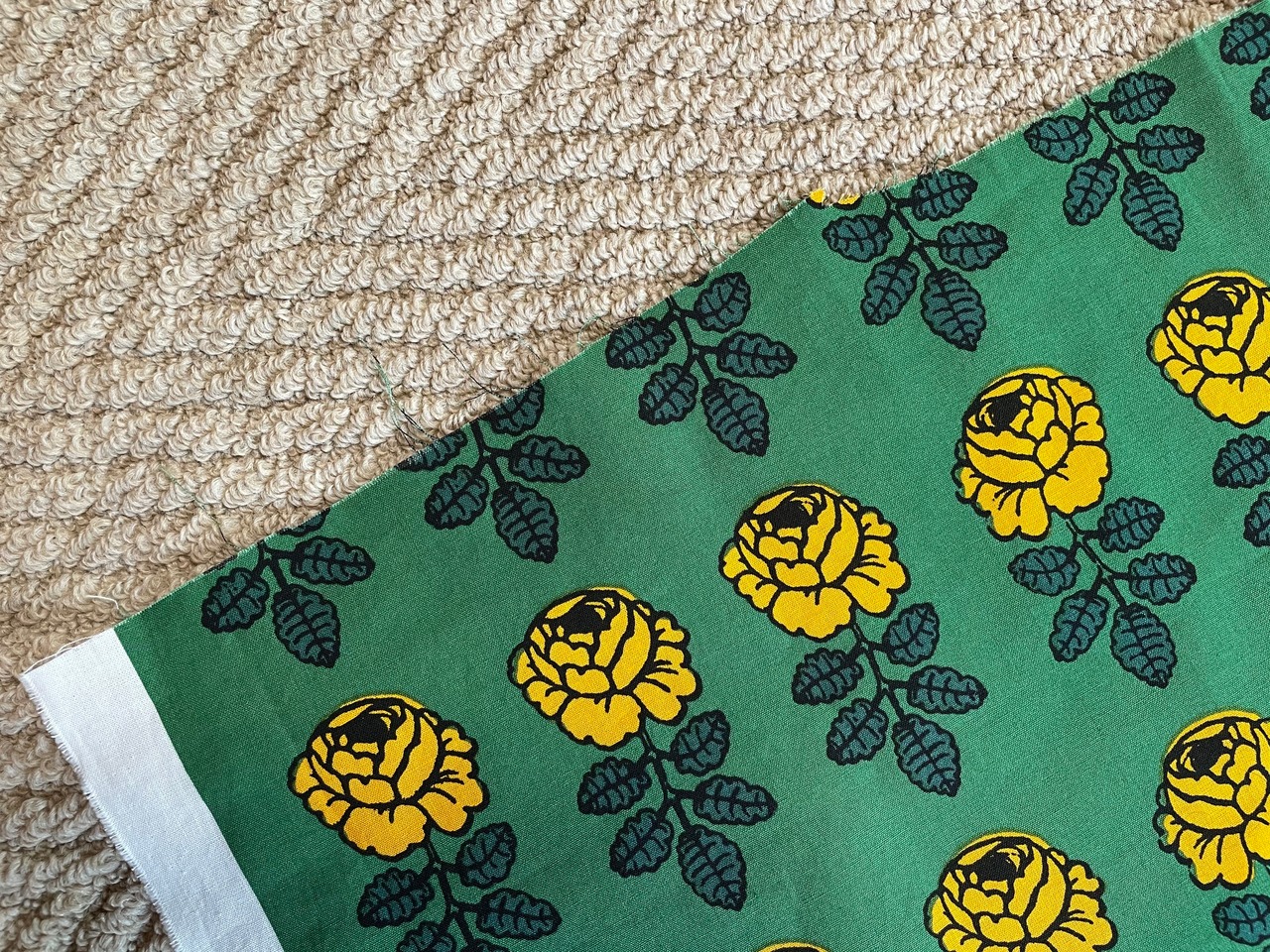 こちらはグリーン地にイエローのバラのデザインで、鮮やかな原色カラーが素敵です。