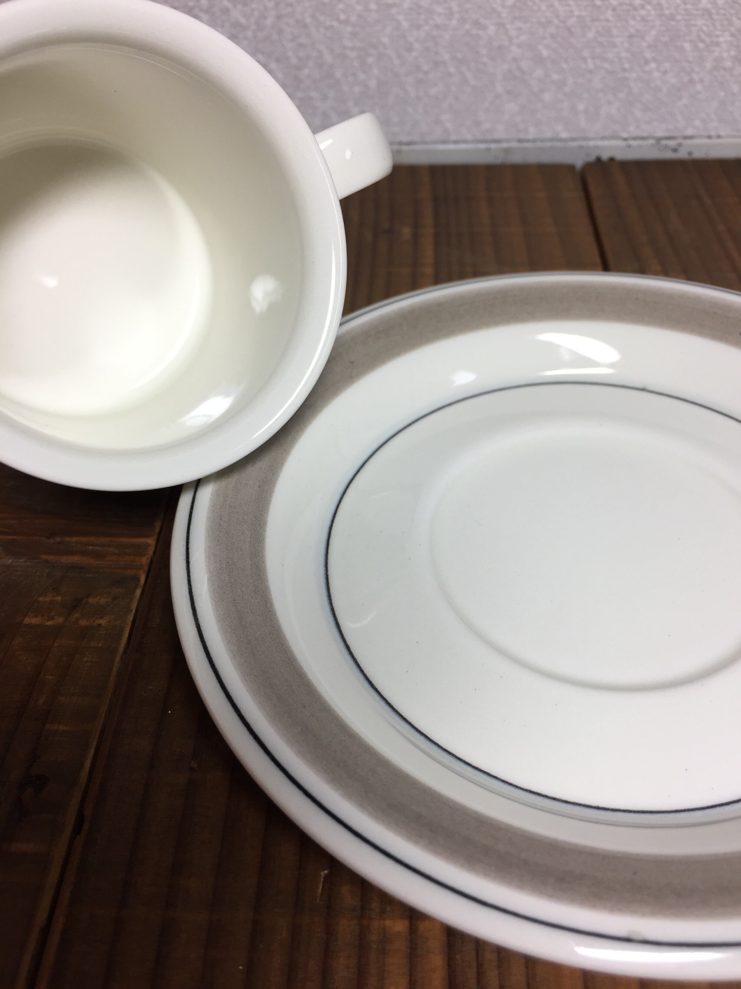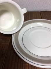モノクロのクロッカスのカップに、レアなグレーリムのソーサー。